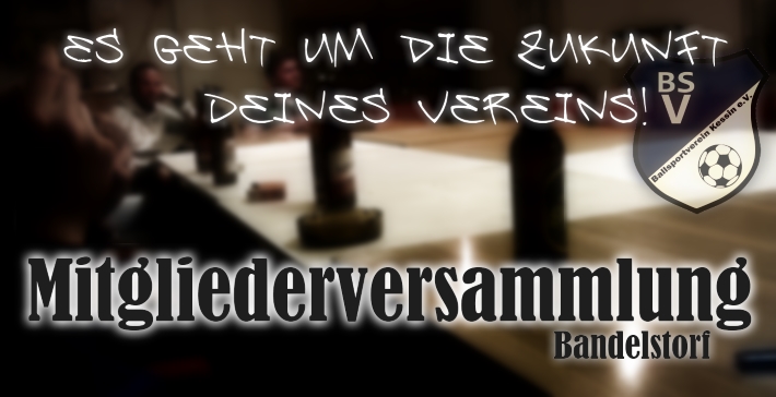 In den folgenden Wochen ist wieder einiges los bei eurem Lieblingsverein. An den kommenden beiden Sonntagen bestreiten die Fußballer in Vorbereitung der Rückrunde zwei Testspiele, bevor man am 15. März im Heimspiel gegen den SV 26 Cammin das erste Ligaspiel nach der Winterpause bestreitet. Zwei Tage zuvor, am Freitag dem 13.03.2015, findet um 19:00 Uhr im Vereinsheim Bandelstorf unsere nächste ordentliche Mitgliederversammlung statt, zu der wir hiermit alle aktiven und passiven Vereinsmitglieder