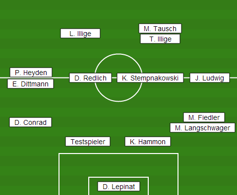 | Aufstellung | D. Lepinat - D. Conrad, Testspieler, K. Hammon, M. Fiedler (M. Langschwager) - P. Heyden (E. Dittmann), D. Redlich, K. Stempnakowski, J. Ludwig - L. Illige, M. Tausch (T. Illige) |